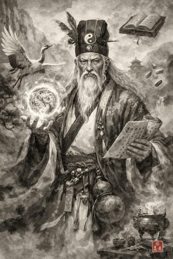 イラスト:ChatGPTにつくってもらった三国志の道士・左慈のイメージ画像。