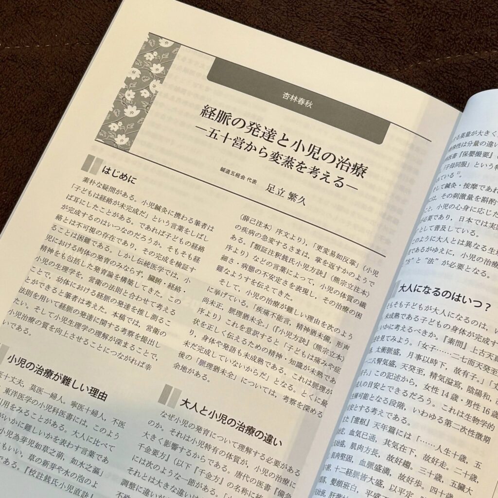 小児はりに携わっていない方でも、興味を持っていただけると嬉しく思います。本論考「経脈の発達と小児の治療 ― 五十営から変蒸を考える - 」は『中医臨床』(184号)に掲載されています。