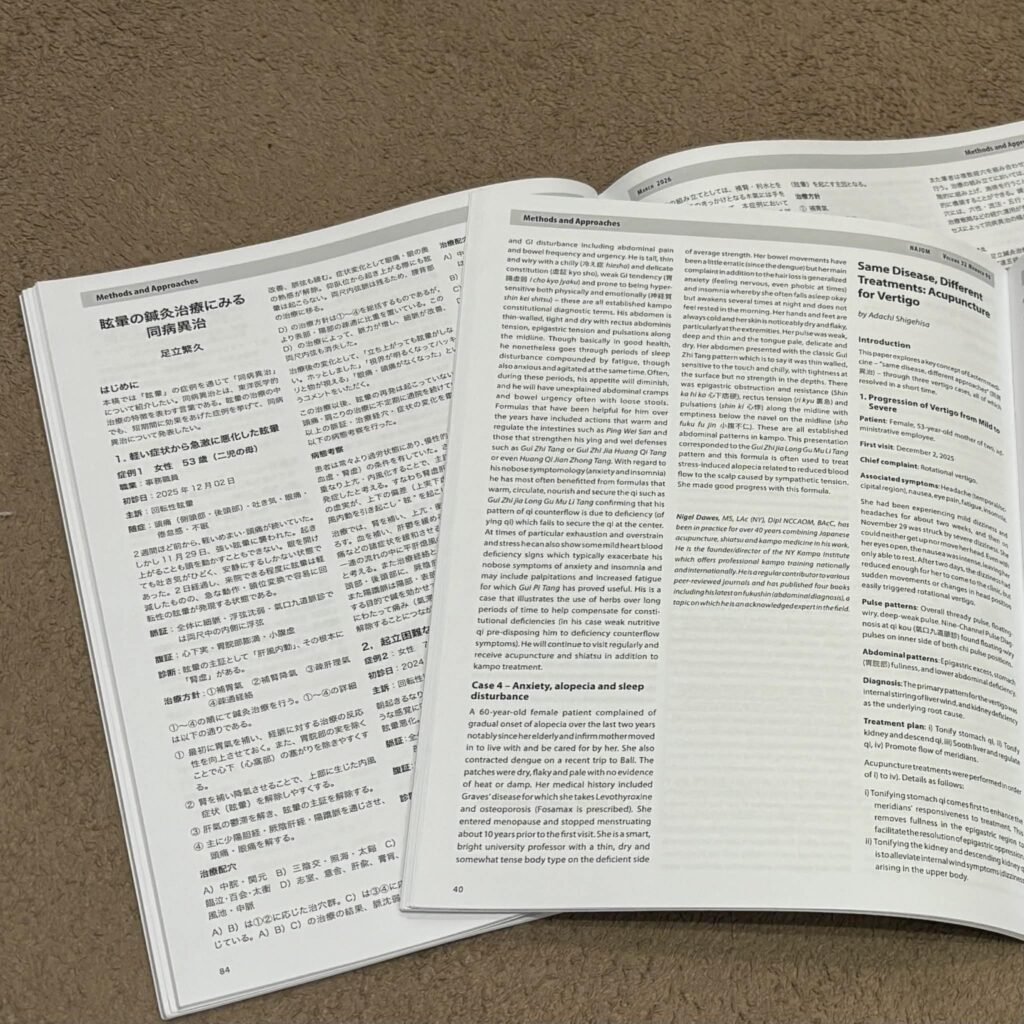 今号には「Same disease,Different Treatments;Acupuncture for Vertigo (眩暈の治療にみる同病異治)」という記事を寄稿しています。